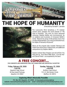 Lowcountry Wind Symphony invites veterans and family to enjoy in our salute to those who have served! This year we pay special tribute to the Marine Corps as they celebrate 250 years of excellence. Instrumental highlights include “Esprit du Corps,” “Semper Fidelis,” “Hyme to the Marines,” “America the Beautiful” and more!